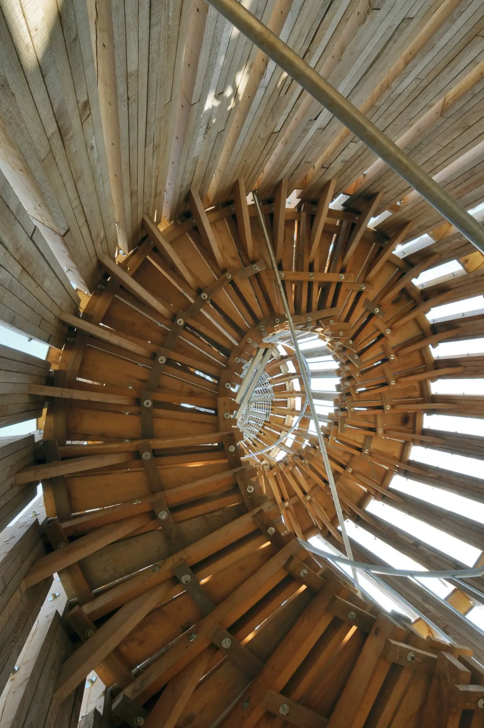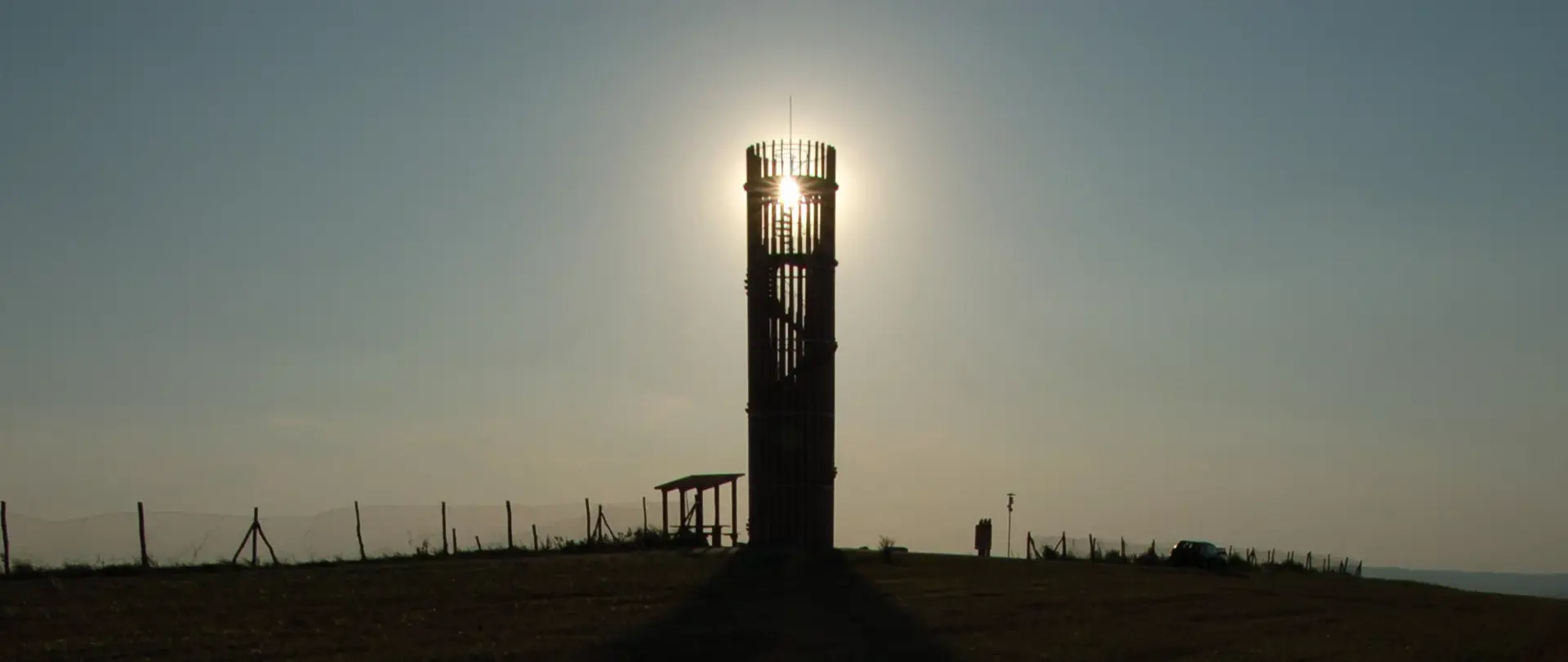 Lokalita stavby (kopec Výhon) i záměr stavby (rozhledna) jsou do jisté míry výjimečné okolnosti, které svádí k exhibici. Svádí zkusit si, co všechno jsme schopni vymyslet a postavit, svádí ke zneužití možností zadání, k prvoplánové reklamě. „Na truc“ těmto svůdným okolnostem bylo cílem zrealizovat stavbu, která nebude mít potřebu a priori poutat pozornost či šokovat ne-normálním tvarem, jen formálně zakřivenou geometrií nebo zcela novým materiálem, cílem nebylo ani hledat novou, nutně jinou nebo podobně moderní architekturu.