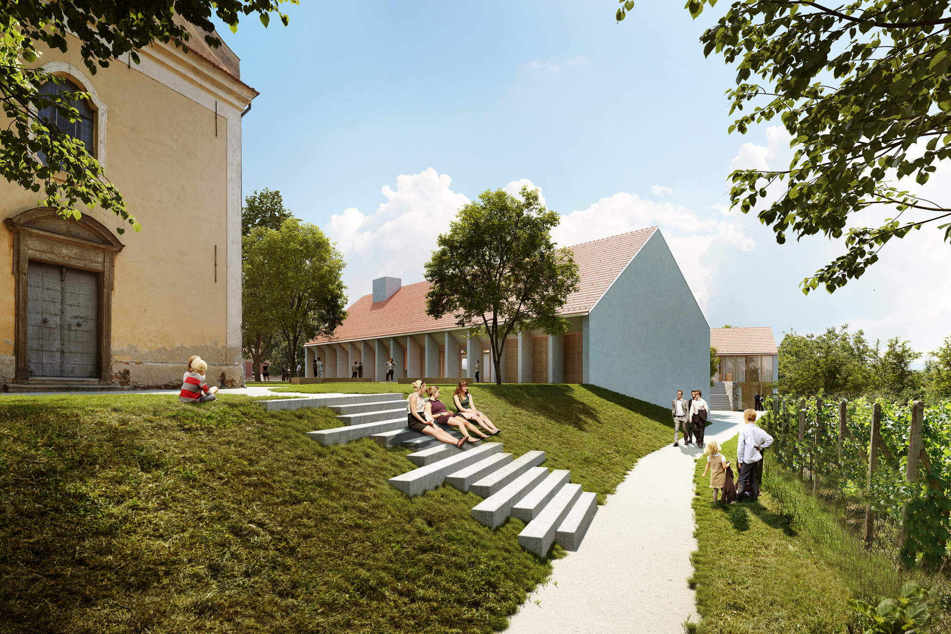 Předmětem zadání bylo navrhnou nový kulturní sál a další zázemí pro potřeby obyvatel jako prostory obecního úřadu, ordinaci lékaře, nebo infocentrum pro návštěvníky této vinařské obce a jejího okolí.