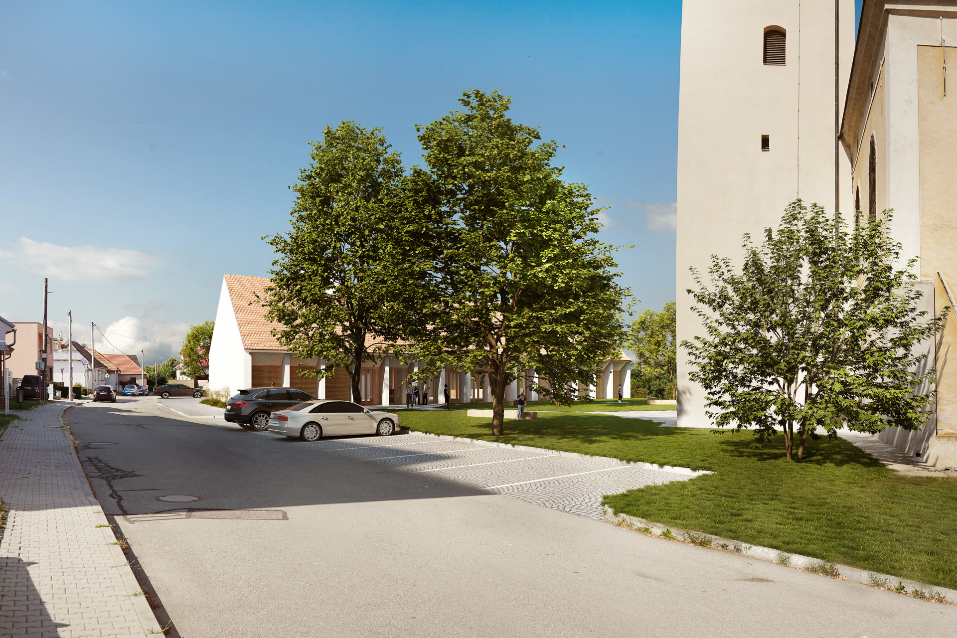 Architektonické řešení pracuje s tradičním tvaroslovím a materiály, svou formou je střídmé a jednoduché, nikoliv banální a usiluje o kvalitní veřejnou stavbu, která nebude konkurencí pro objekt kostela, který je těžištěm celého místa.
